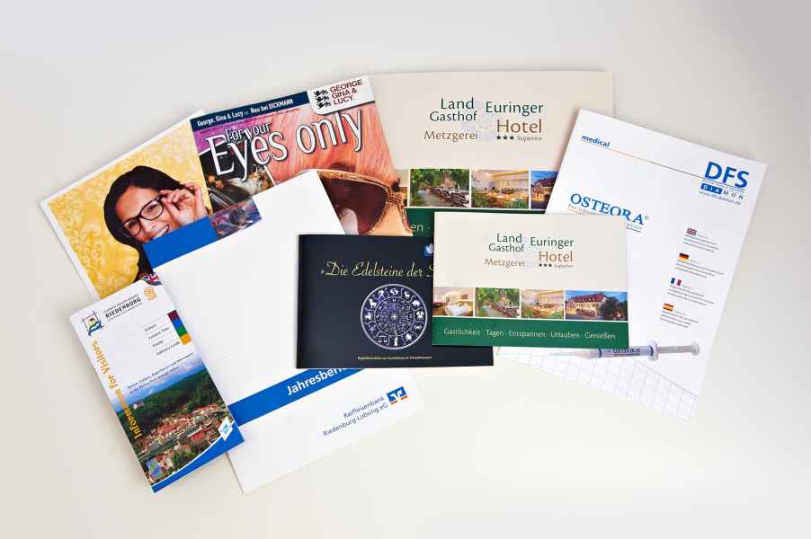 Unser personalisiertes Design kombiniert mit hauseigenem Druck sichert Ihnen vom Entwurf bis zum Versand bei kleinen als auch großen Auflagen höchste Qualität und Flexibilität. Mittels Kataloge, Broschüren, Prospekten oder auch Rundschreiben treten Sie mit Ihren neuen als auch bestehenden Kunden individuell in Kontakt und bringen aussagekräftige Identitätsträger Ihres Unternehmens in Umlauf.